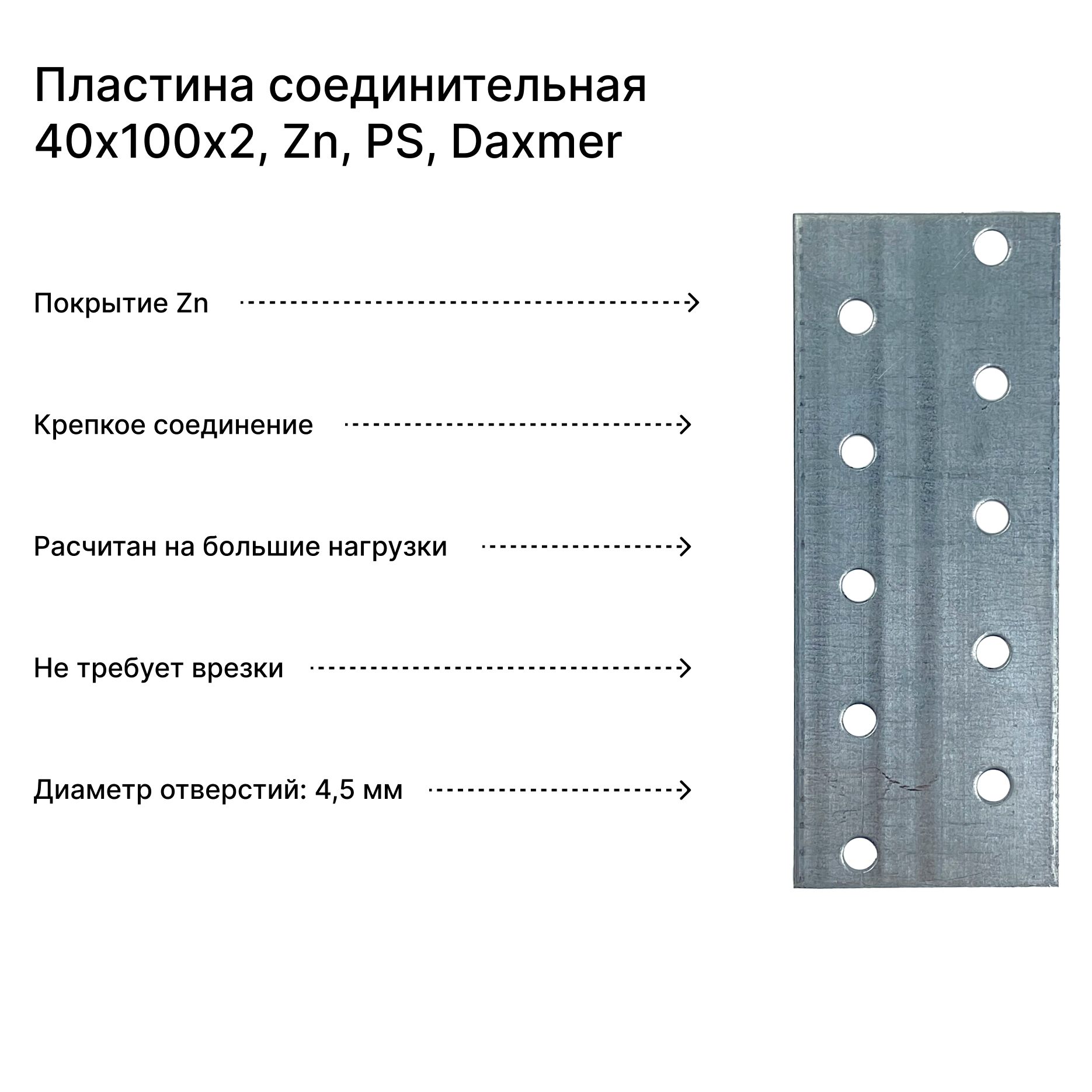 Пластина соединительная Daxmer 40х100х2, Zn, PS