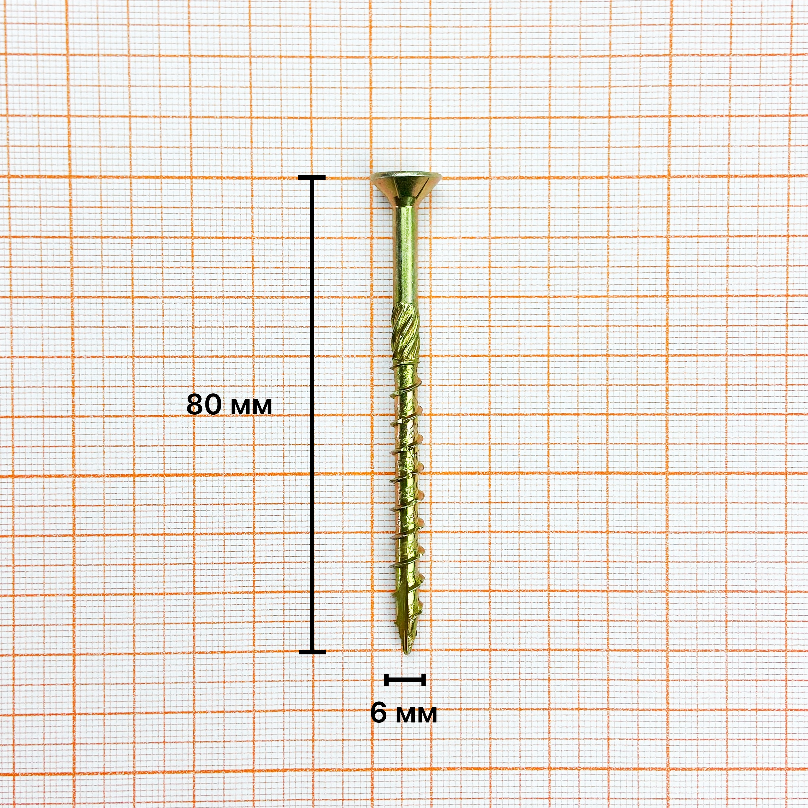 Саморез конструкционный 6x80 желтый цинк, потайной, TX30 (200 шт)